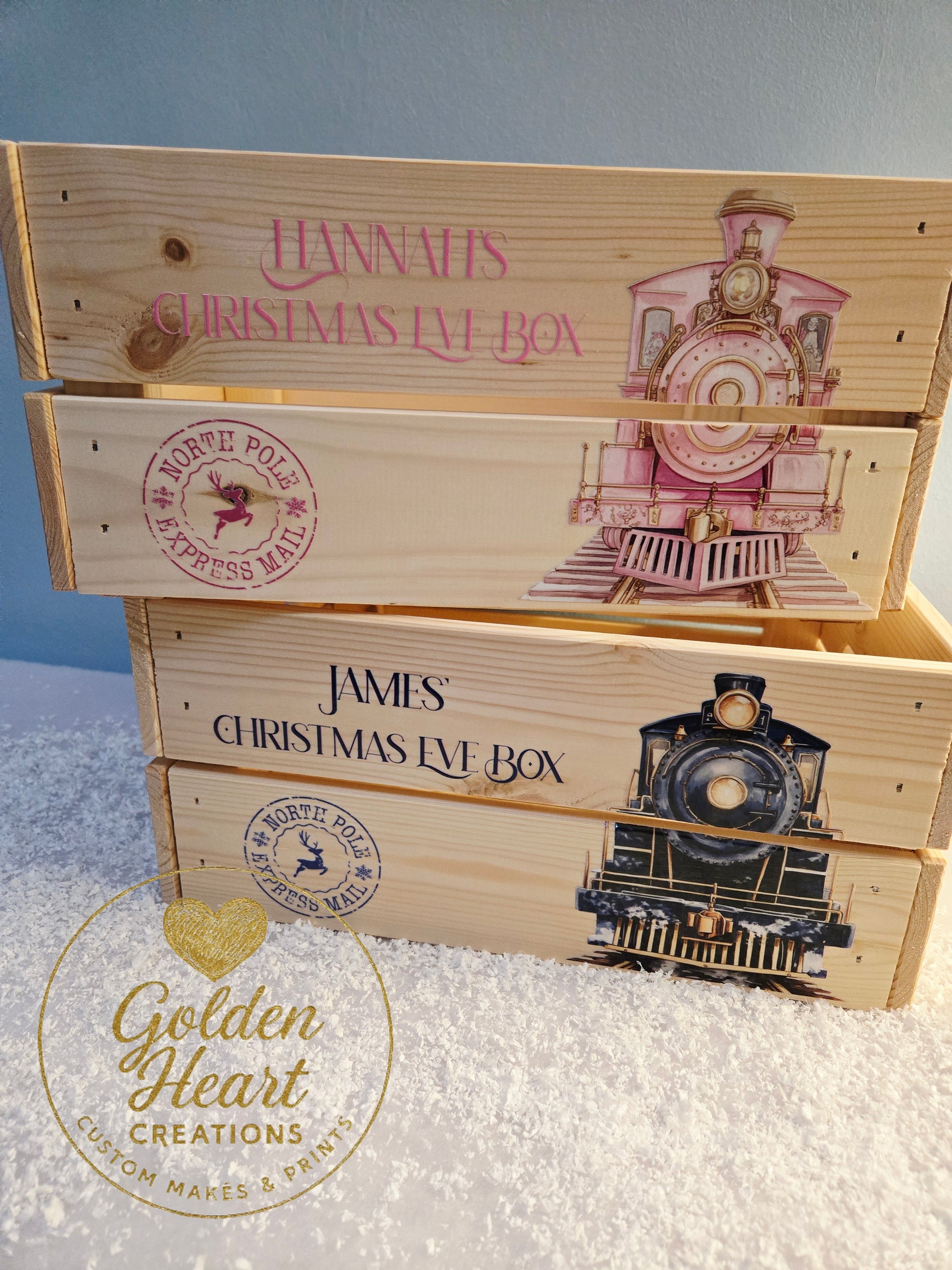 Make Christmas Eve magical with these beautifully customised wooden crates — the perfect keepsake for children, siblings, or the whole family.